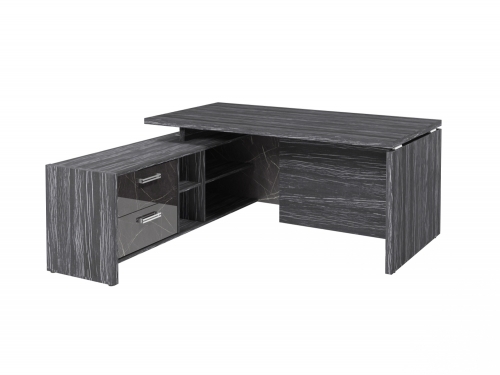 Столешница, бок стола и бок тумбы выполнены из ЛДСП толщиной 38 мм. Цвет - "Древесина Графит". Кромка 2 мм.