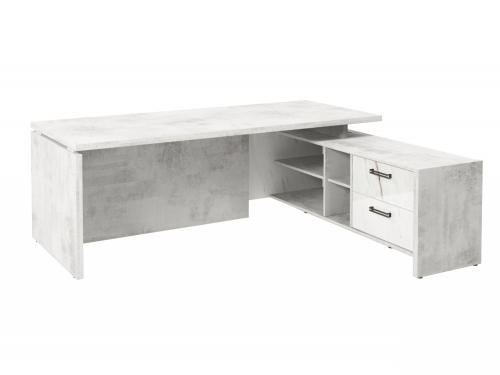 Столешница, бок стола и бок тумбы выполнены из ЛДСП толщиной 38 мм. Цвет - "Хромикс белый". Кромка 2 мм.