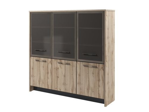 Шкаф может быть в левом и правом исполнении, в зависимости от направления открывания стеклянных и низких дверей.